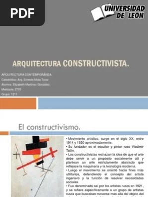 04/04/2021 · la arquitectura constructivista es más a menudo recordada por escritos y en papel.. La arquitectura moderna emerge, por lo tanto, con las profundas transformaciones estéticas propuestas por las vanguardias artísticas de los años 10 y 20, especialmente el cubismo, el abstraccionismo (con énfasis en los estudios de bauhaus, de stijl y la vanguardia rusa) y el constructivismo. 29/07/2008 · la obra canónica del constructivismo fue la propuesta de tatlin para el monumento a la iii internacional (1920) que combinaba una estética de máquina con componentes dinámicos que celebraban la tecnología, como los reflectores y las pantallas de proyección... Habitar, imaginarios, espacialidad, significado, etc., que pueden ser examinados como procesos cognitivos, según distintas corrientes en arquitectura, que integran neurociencias, ciencias cognitivas y fenomenología, entre otras, desde …